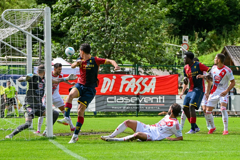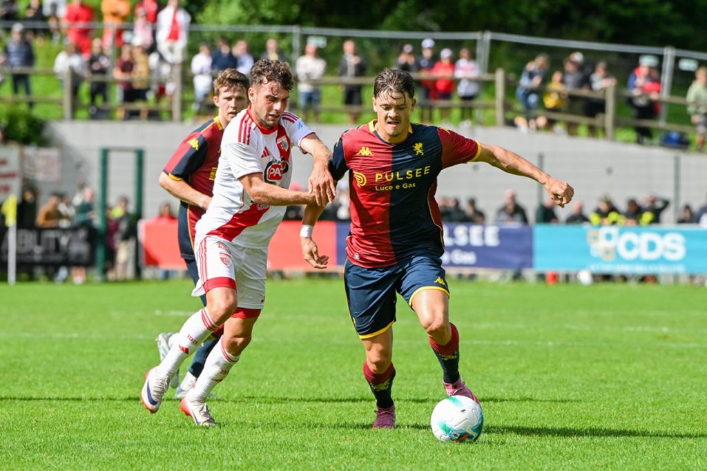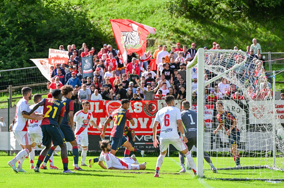 Val di Fassa – Un mare di gente, o meglio, di genoani. Saliti con ogni mezzo per riempire la tribuna del ‘Benatti’ e issare la bandiera del “io c’ero”. E il modo migliore per mettere il cappello sulla fine della pre-season. Già. Sotto gli occhi del presidente Dan Sucu, applauditissimo nella presentazione serale a Moena, il Genoa ha messo il sigillo sul ritiro prevalendo 3-2 con il Mantova dell’ex Pittino. Scuola Genoa. Senza il contributo di parecchi lasciati a riposo per coricare gli acciacchi, Frendrup e compagni hanno messo benzina nel motore, provando gli schemi nel test con il Mantova. I virgiliani erano passati in vantaggio nel pt con Radaelli, chiudendo avanti prima dell’intervallo nonostante le occasioni dei nostri. Nella ripresa il vento ha cambiato direzione. Al pareggio di Marcandalli sugli sviluppi di un corner, ha replicato Venturino con il tap-in per il sorpasso. Galuppini ha firmato poi il il 2-2 su rigore fischiato da Zufferli, prima del vantaggio bis di Thorsby con un perentorio colpo di testa. Stanotte il team rientra a Genova per la ripresa di inizio settimana.