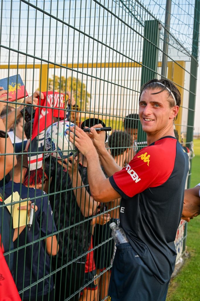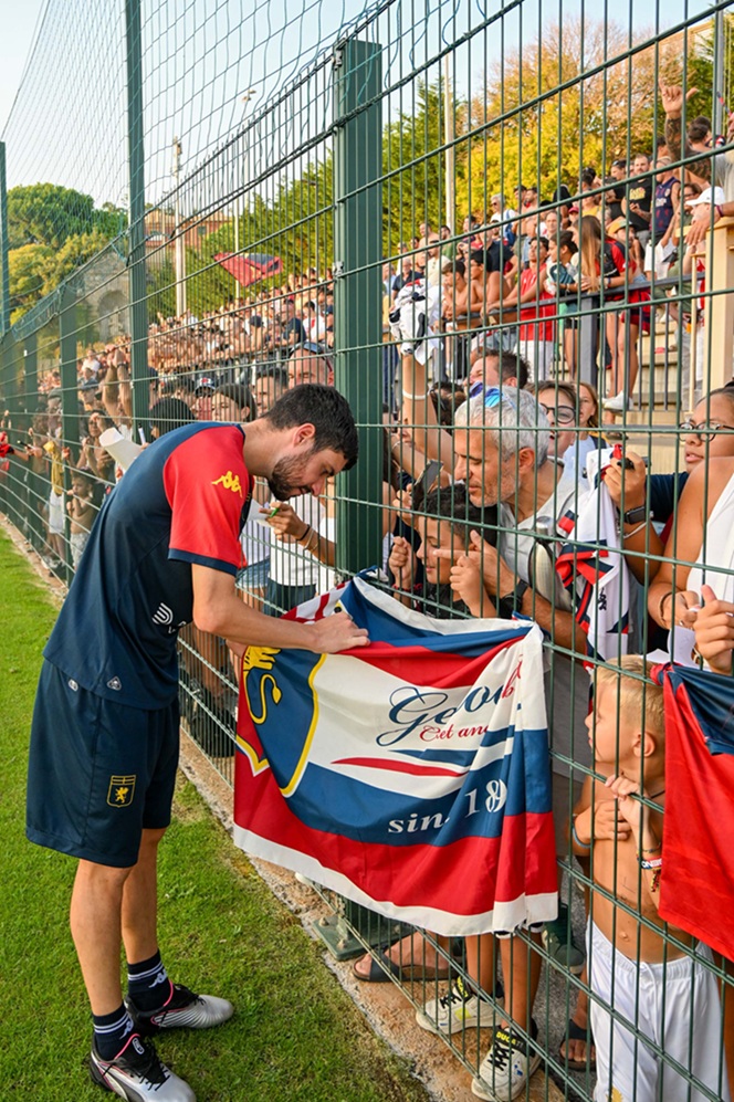 Insieme siamo più forti – Un bagno di folla, di genoanità e di caldo. Ventagli sotto il naso e bandiere sopra le teste. Un mare di gente ha affollato l’impianto del club in occasione della sessione a porte aperte, la prima della serie che accompagnerà la stagione. Neanche lo spostamento di orario ha inciso più di tanto sotto i colpi della calura eccezionale di questi giorni. Nessun calcolo sul terreno di gioco. Dopo l’ampia apertura in palestra, i giocatori sono stati sottoposti ad addestramenti tecnici, poi a una partitella a due tocchi per allenare il possesso palla. Quindi un’altra 7 contro 7, la chiusura della seduta, la coda di autografi e selfie. Con il gruppo non si sono allenati Ekuban e Otoa, sottoposti a indagini diagnostiche che hanno evidenziato una distrazione ai flessori. Indicazioni positive invece per Cuenca e Messias che hanno iniziato il rientro graduale nel gruppo.