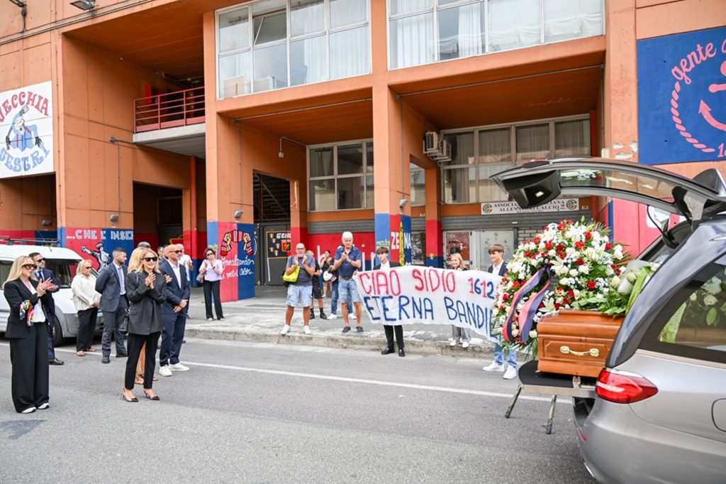 Sidio c’è – L’aria salmastra incapsulata dal vento, la maglia rossoblù col numero 11. Le parole che sgorgano limpide, il feretro sulle spalle degli amici. Il nodo alla gola nella carezza dei sorrisi ai piedi del sagrato, nei capannelli dove il ricordo di una umanità come la sua ha il suono di un violino, schiude il profumo dei sentieri percorsi insieme, riverbera quel carattere che non le mandava a dire. Dentro o fuori: prendere o lasciare. Una rimpatriata di facce conosciute e non, qualche compagno dei tempi, ha salutato Sidio per l’ultima trasferta. Il Genoa di ieri, oggi e… domani, in tutte le componenti ed espressioni, si è dato appuntamento nella chiesa di Carignano.