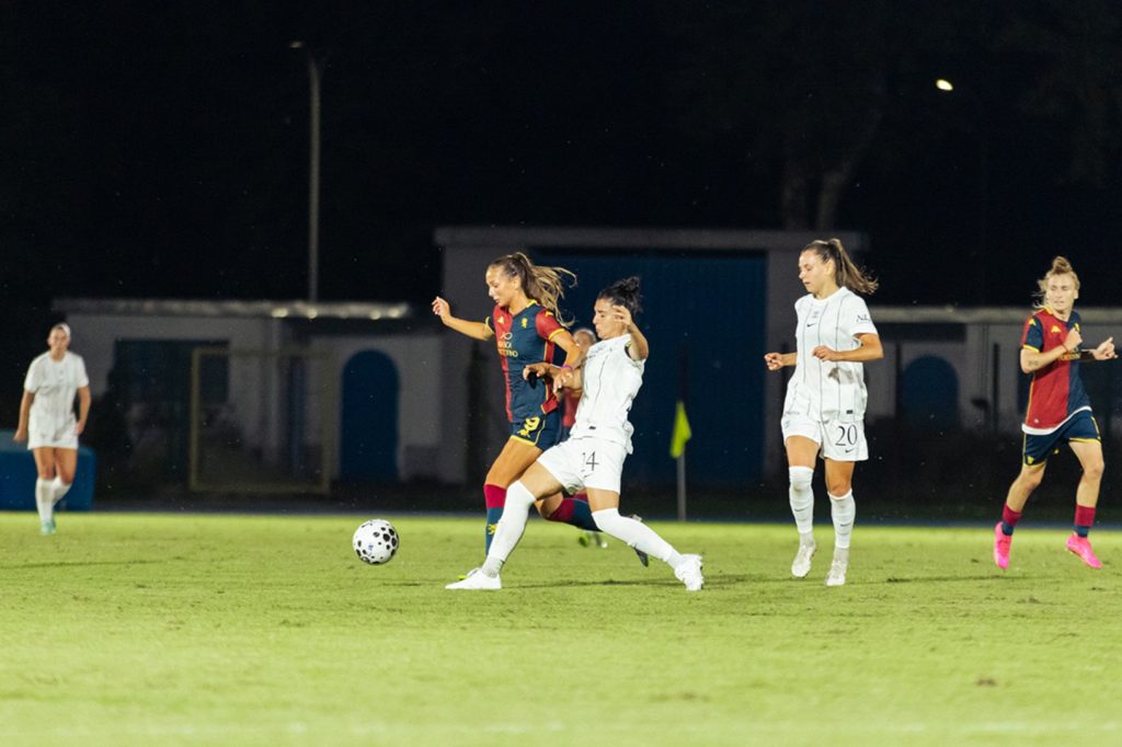 Rodaggio in corso – Un gran bel punto, il primo in una gara ufficiale dopo la promozione in Serie A, per il Genoa Women che, un passo alla volta, sta prendendo le misure e confidenza con l’aumentato tasso di difficoltà. “Puntiamo a dare fastidio in ogni singola partita alle avversarie”, la sintesi del tecnico De La Fuente. Pur subendo la verve delle lariane in certi tratti di partita, le nostre a Seregno sono rimaste aggrappate alla partita grazie anche a un paio di interventi di Forcinella, recuperando nel finale, con il pareggio di Bargi, lo svantaggio di Madsen a fine primo tempo. Una partita in cui le comasche hanno spinto di più, senza riuscire a scalfire la tigna delle nostre, vicine al pari in precedenza con una traversa di Vigilucci. Altre indicazioni positive in definitiva come quelle scaturite, nel percorso di crescita, dalla gara persa di misura con l’Inter seguita alla Sciorba da 500 spettatori e dall’amichevole vinta con il Sassuolo.
