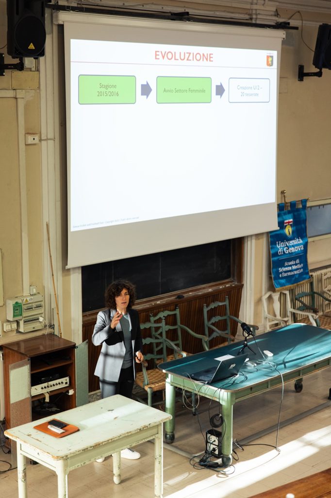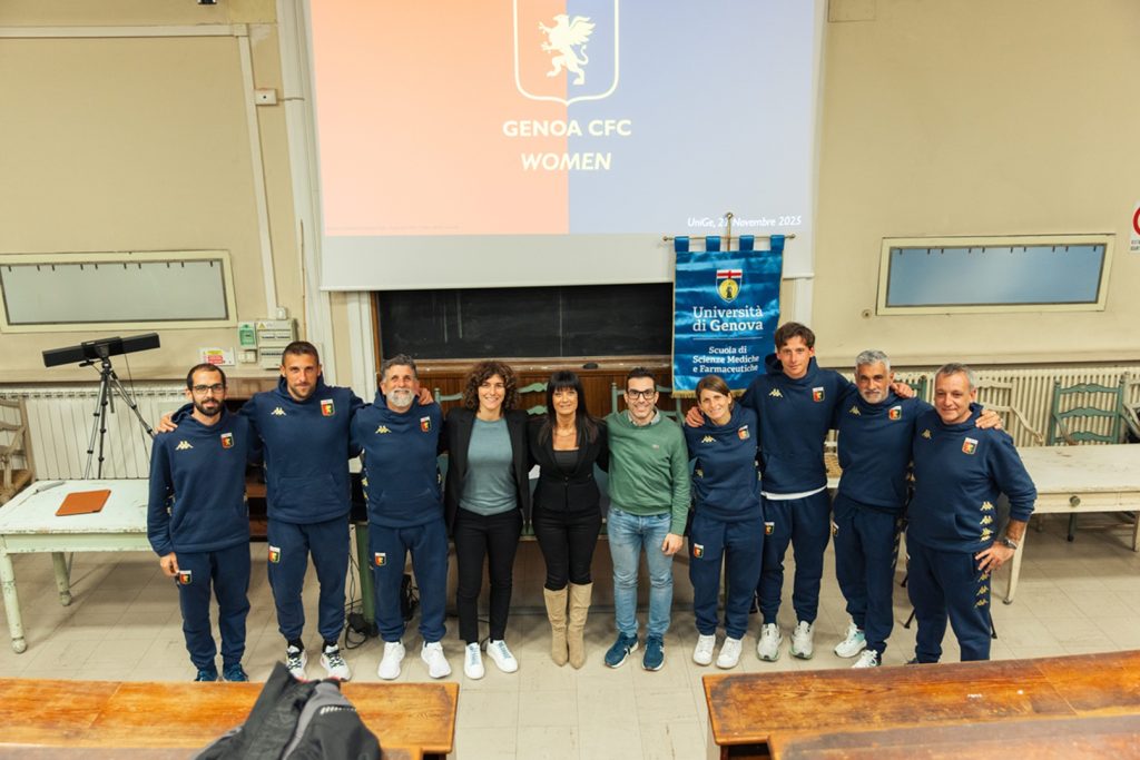 In cattedra – La responsabile di tutta l’area femminile del Genoa, Marta Carissimi, con l’allenatore Sebastian De La Fuente e lo staff tecnico della prima squadra, ha tenuto una masterclass, sul tema delle dinamiche e della crescita del calcio femminile, per i laureandi al corso di Scienze Motorie dell’Università di Genova. Una relazione di approfondimento che ha posto l’accento sugli aspetti di gestione, programmazione tecnica e organizzazione all’interno di un club professionistico, prima di passare la palla al mister per esporre la sua visione sugli argomenti più focalizzati sul campo.