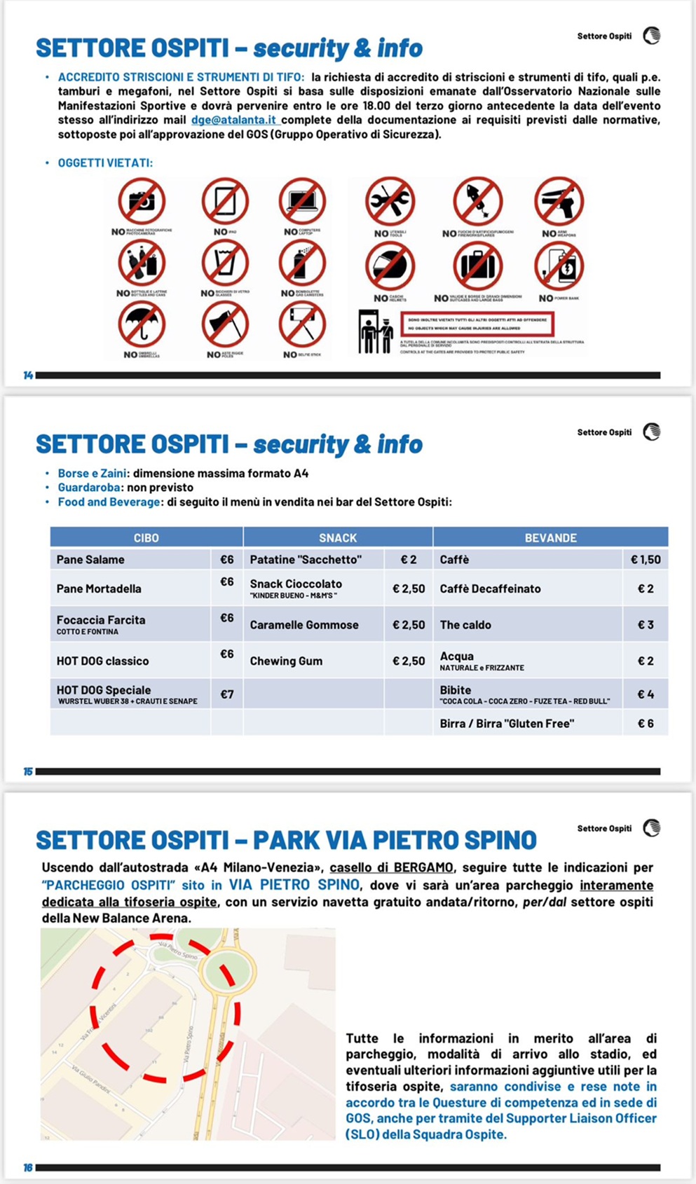 In vista della partita degli ottavi di Coppa Italia Frecciarossa, Atalanta-Genoa, in programma mercoledì 3 dicembre con inizio alle 15, si comunica ai supporter al seguito che, uscendo dal casello autostradale di Bergamo, potranno seguire lungo il percorso le indicazioni per il “Parcheggio Ospiti”, situato in Via Pietro Spino e interamente riservato alla tifoseria genoana. Per raggiungere poi lo stadio è previsto un servizio navetta gratuito andata/ritorno. Si invitano i sostenitori a a prendere visione di queste e altre informazioni nel file allegato. Il club ringrazia anticipatamente per la collaborazione.
