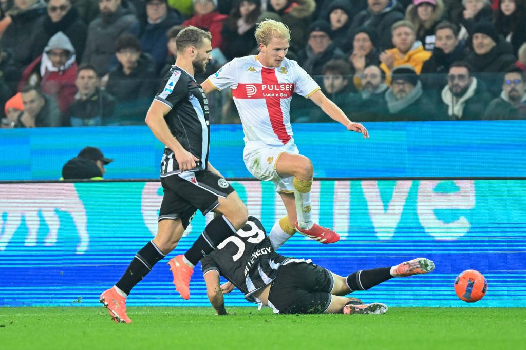 Quattordici punti in quattordici partite – Un successo di fondamentale importanza nella corsa salvezza. Otto punti in quattro partite sotto la nuova conduzione tecnica. Altri due gol e seconda vittoria consecutiva. Cambio marcia. Incartiamo la partita da manuale nella prima frazione, prendendo le misure e concedendo briciole agli avversari lungo le direttrici verso la porta di Leali. Siamo sul pezzo e sbrighiamo l’ordinaria amministrazione, alleggerendo la pressione con ribaltamenti di fronte. L’equilibrio si spezza al 34’ quando Malinovskyi insacca dal dischetto di potenza, palla da una parte, Okoye dall’altra, su rigore procurato da un’uscita avventata del portiere che atterra Colombo, sempre più determinante nelle ultime partite. Deboli e telefonate le conclusioni dei bianconeri nelle rare occasioni in cui si affacciano al tiro, l’ultimo squillo prima dell’intervallo è opera di Thorsby. Si riparte al rientro con un tentativo di Vitinha e, per i friulani, di Bertola che trova pronto Leali. Piotrowski di nuca sfiora il pareggio sugli sviluppi di un angolo, poi infila all’incrocio, da pochi metri, il suggerimento dall’esterno di Rui Modesto. Reagiamo andando a un passo dal raddoppio. E’ ancora Colombo a indirizzare di testa da distanza ravvicinata, Okoye la smanaccia, ma nulla può nel finale. Dopo un recupero palla ripartiamo razzenti in profondità. Ekhator imbastisce, Messias sfoggia la veronica, Ekuban mette al centro e Norton-Cuffy appoggia dentro. Tanta roba. Rischiamo su una conclusione di Lovric intercettata da Leali. Chiudiamo con i tre punti e con zero ammoniti.
