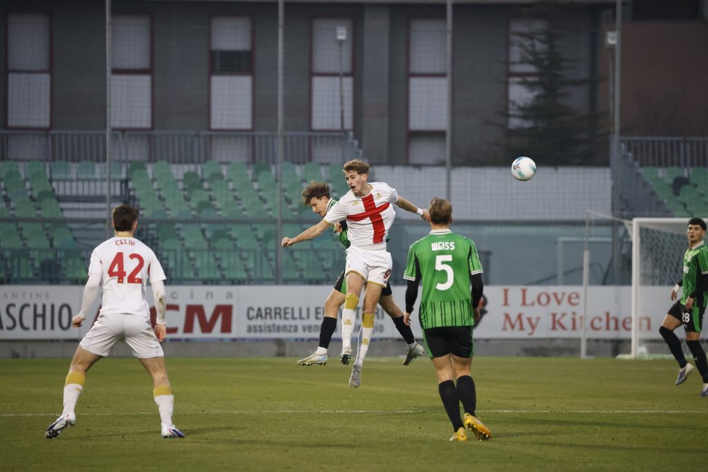Un punto fuori casa – Due squadre con valori importanti, sia pure con caratteristiche differenti. Una partita a viso aperto a darle e prenderle. Al ‘Ricci” Sassuolo e Genoa pareggiano segnando un gol a testa, puntando al bottino grosso fino al termine ma senza riuscirci. Gli emiliani costruiscono tre palle-gol nella prima frazione, con Baccelli che in due occasioni chiude lo specchio con interventi decisivi, venendo però trafitti dal vice-capitano Arata, sulle ali di uno stacco imperioso e del corner di capitan Romano. Nella ripresa i padroni di casa pareggiano con Chiricallo dagli undici metri, su rigore accordato per un contatto veniale di Odero. Ci provano in tutti i modi a superarsi gli schieramenti, con l’innesto di forze fresche. L’unica occasione càpita nella nostra area ed è disinnescata da Baccelli che intercetta.