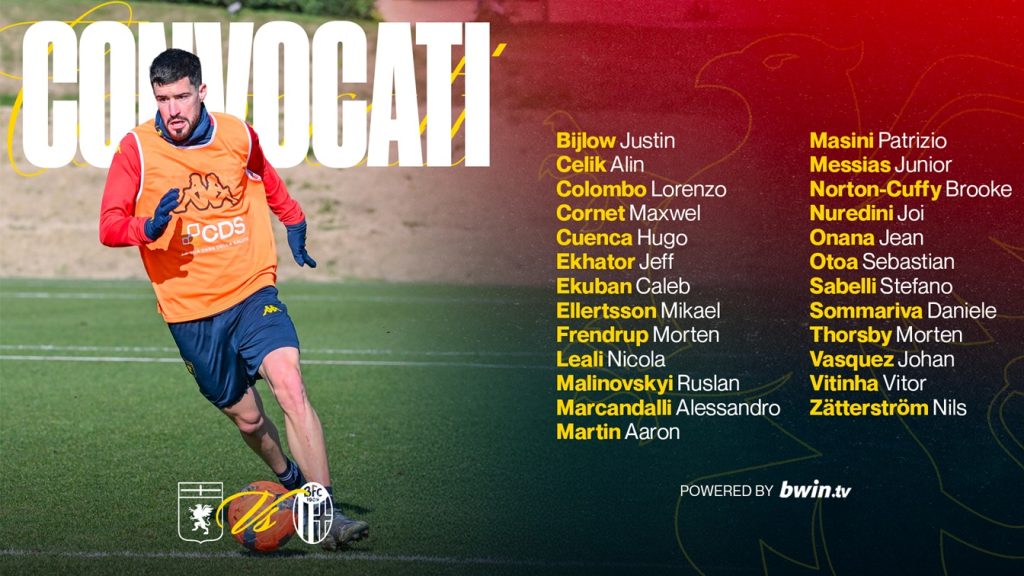 NewsI calciatori selezionati dallo Staff Tecnico per la partita con il Bologna, valida per la 22ma partita di Serie A Enilive 2025/26.