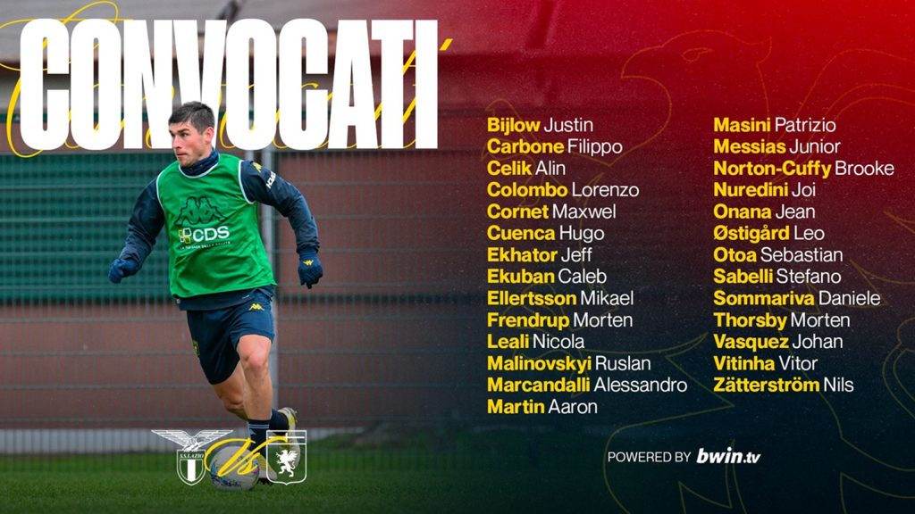 I calciatori selezionati dallo Staff Tecnico per la partita con la Lazio, valida per la 23ma partita di Serie A Enilive 2025/26.