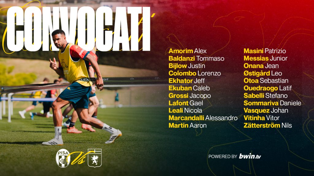 I calciatori selezionati dallo Staff Tecnico per la partita con il Pisa, valida per la 33ma partita di Serie A Enilive 2025/26.
