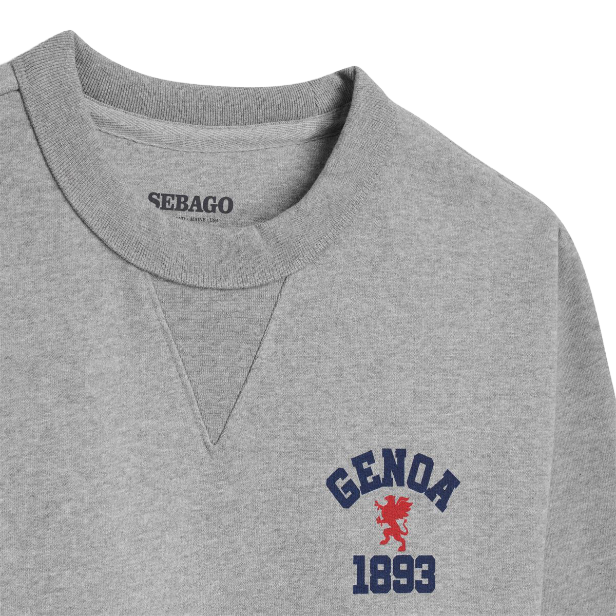 Realizzata in Cotone garzato – morbido al tatto e caldo sulla pelle – presenta colletto, fondi polso e orlo inferiore in costina, inserto a V attorno al collo in costina per evitare slabbrature nel tempo, fettuccia salvasudore lungo il suo interno e mezzaluna interna.