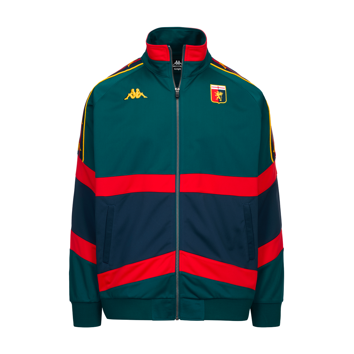 Apertura zip davanti, tasche, polsi elasticizzati e coulisse elastica sul fondo. Logo Omini in ricamo 3D sul fronte e sul retro, logo del Team ricamato sul fronte e lettering del Team ricamato sul retro, Banda Omini sulle maniche.