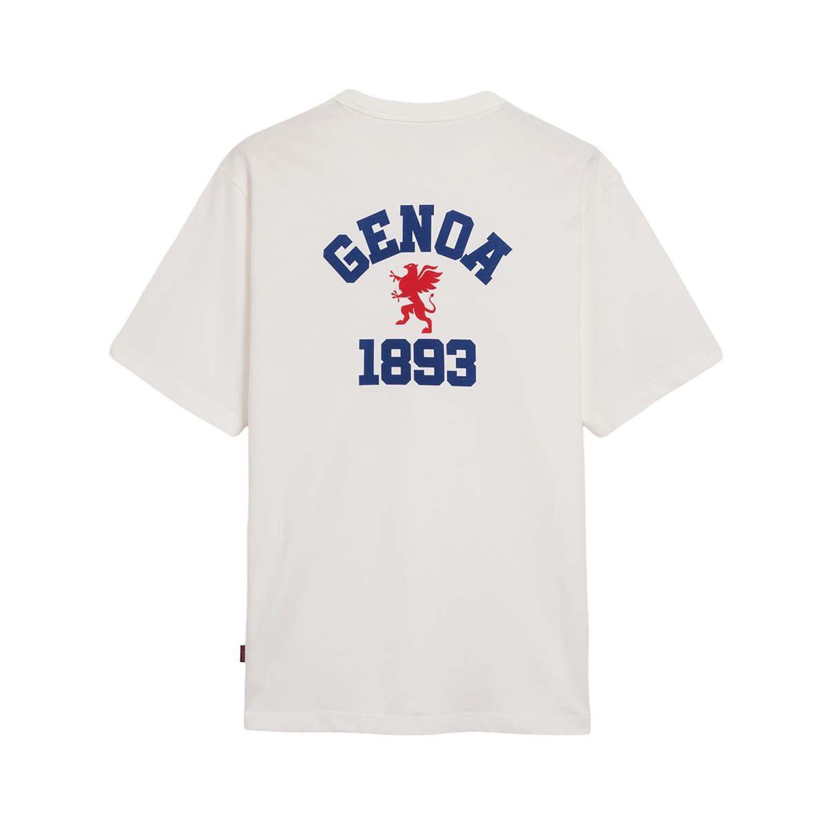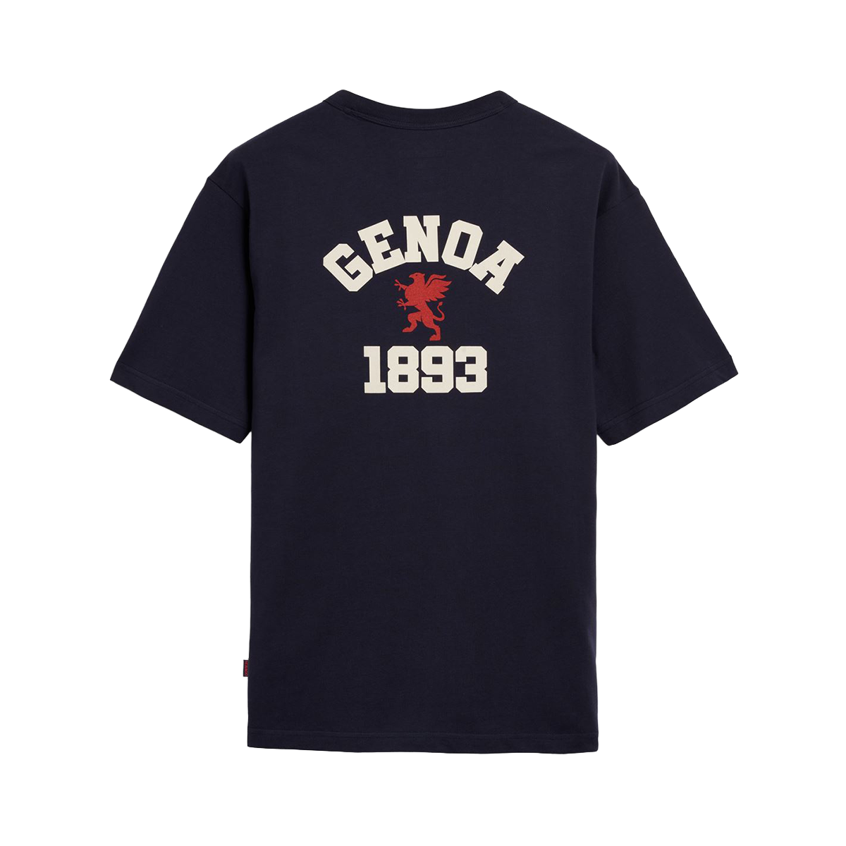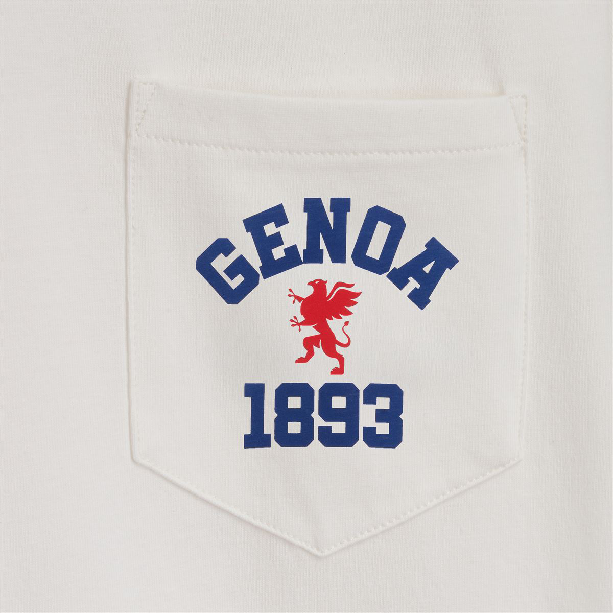 T-shirt realizzata in leggero jersey di cotone 100% con tasca anteriore multiuso, girocollo alto a coste e personalizzazione Genoa 1893.